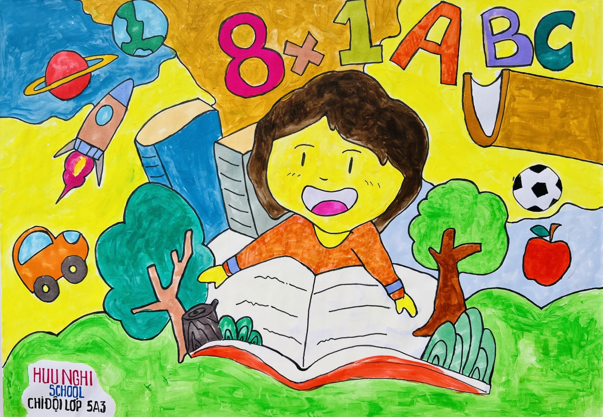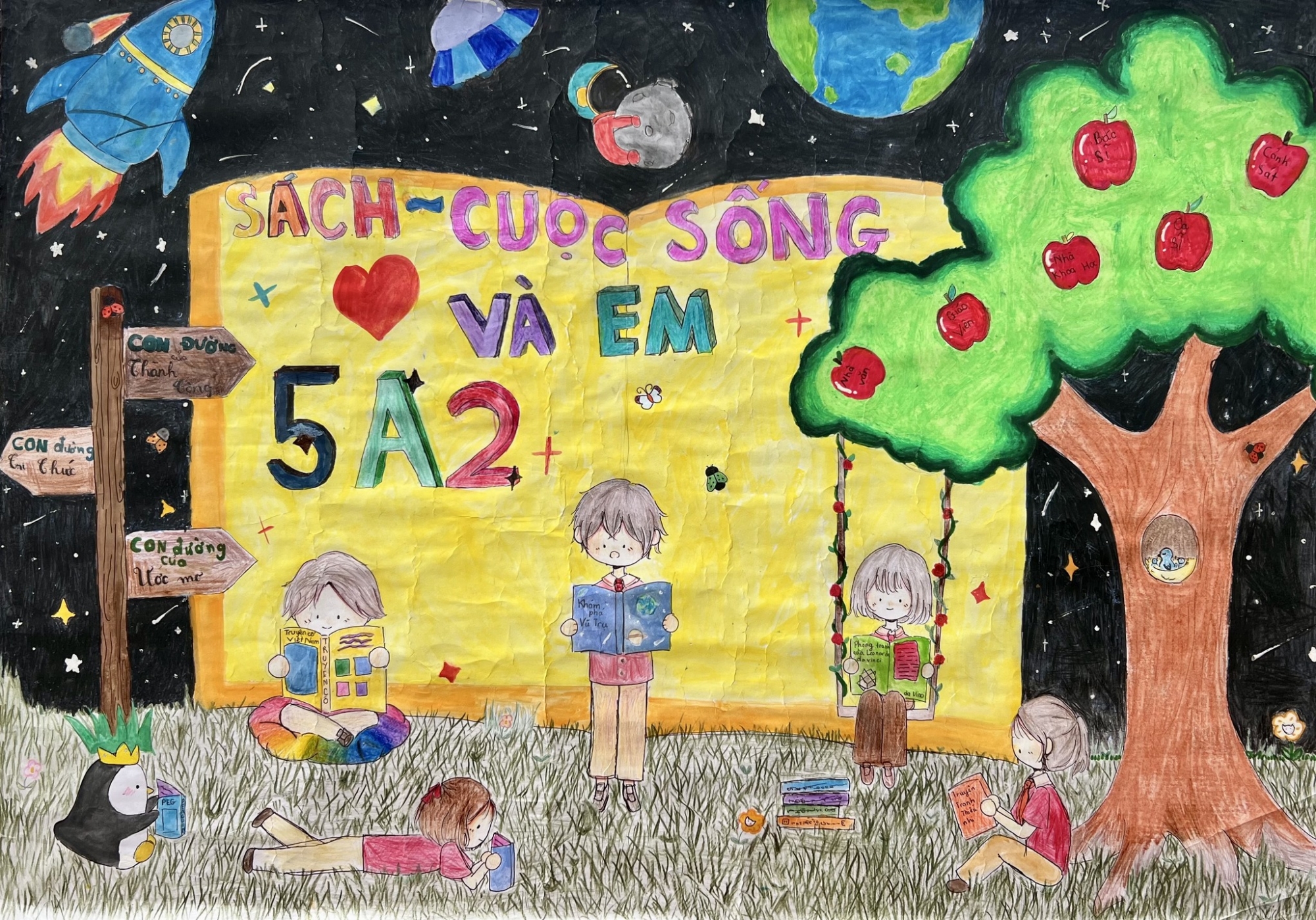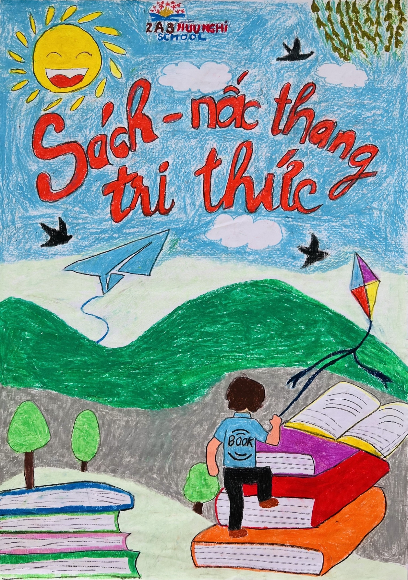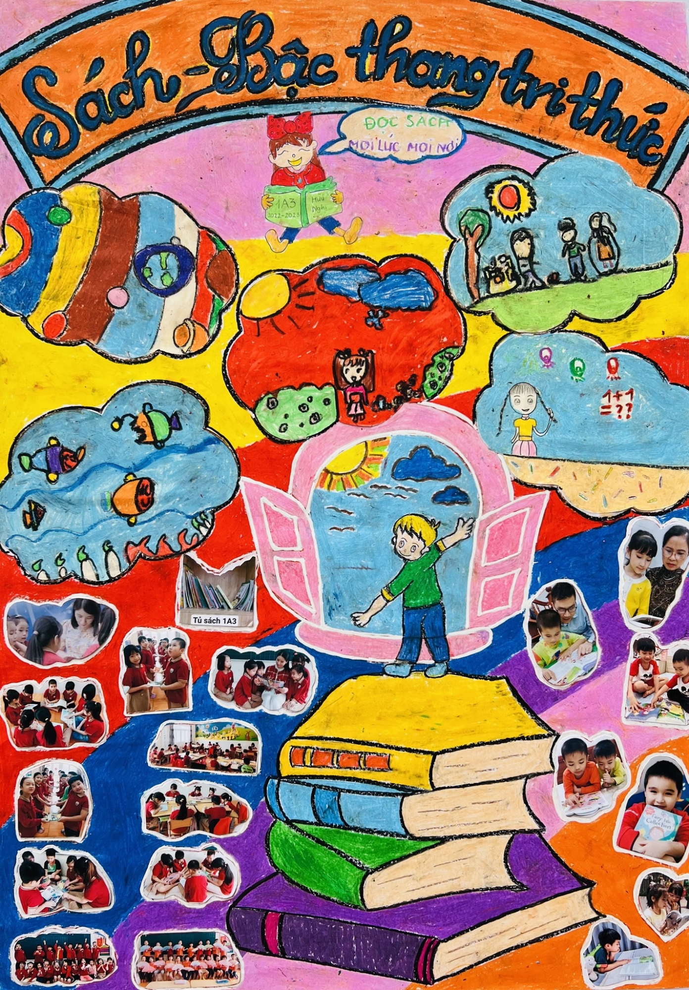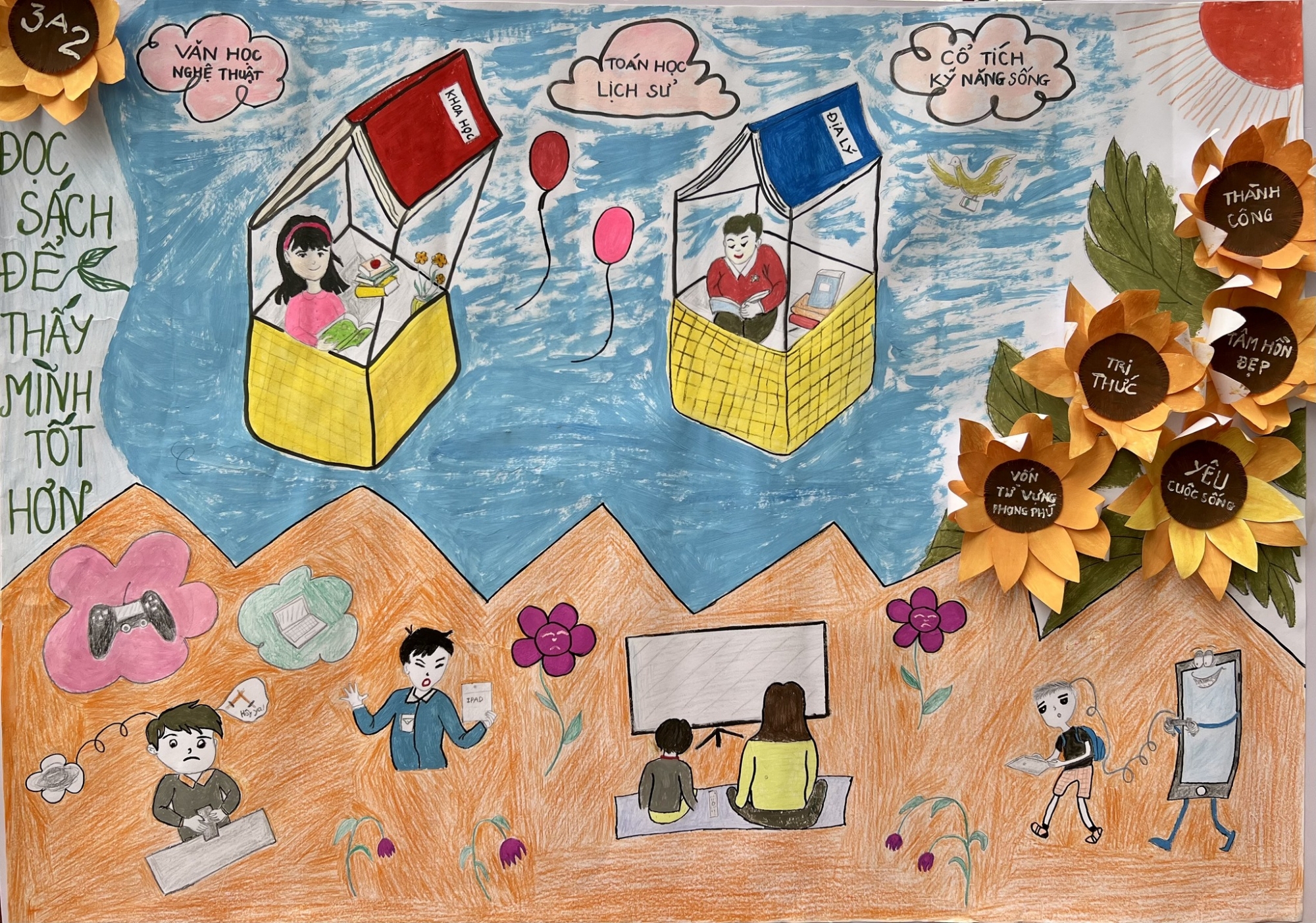 Mỗi tác phẩm tranh/ poster dự thi đều được cô và trò các lớp đầu tư rất công phu từ ý tưởng đến nội dung, nhằm tôn vinh giá trị, ý nghĩa, tầm quan trọng của sách và văn hóa đọc trong đời sống tinh thần của các em.