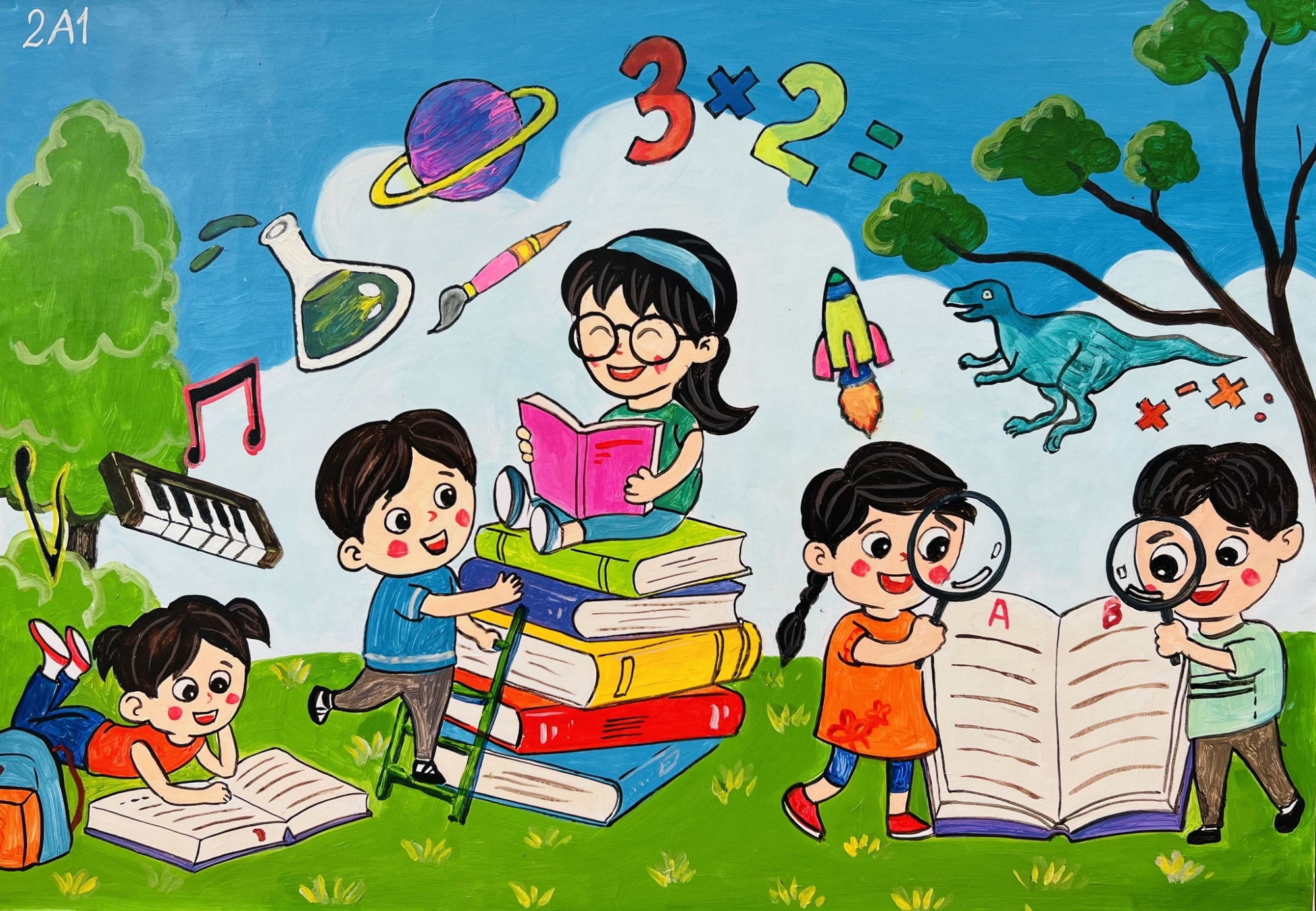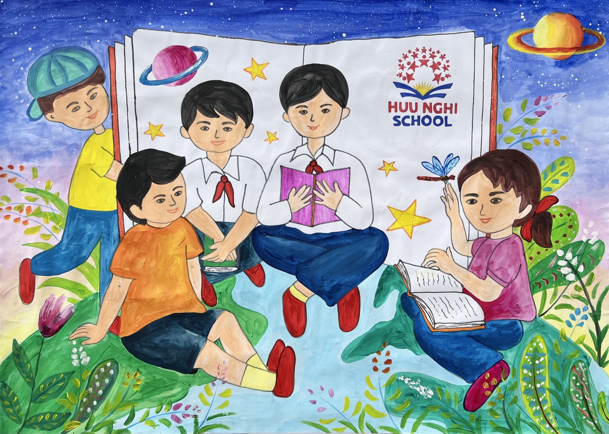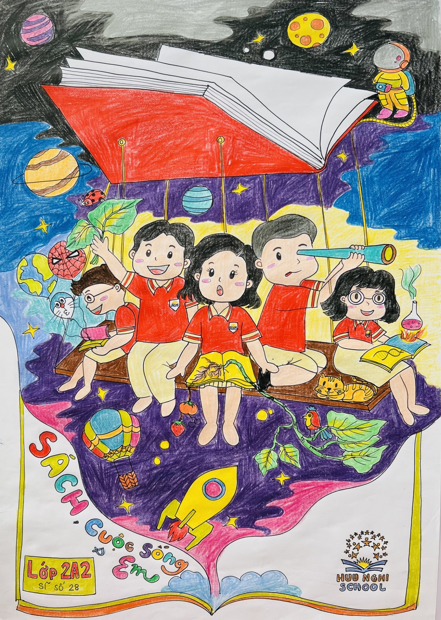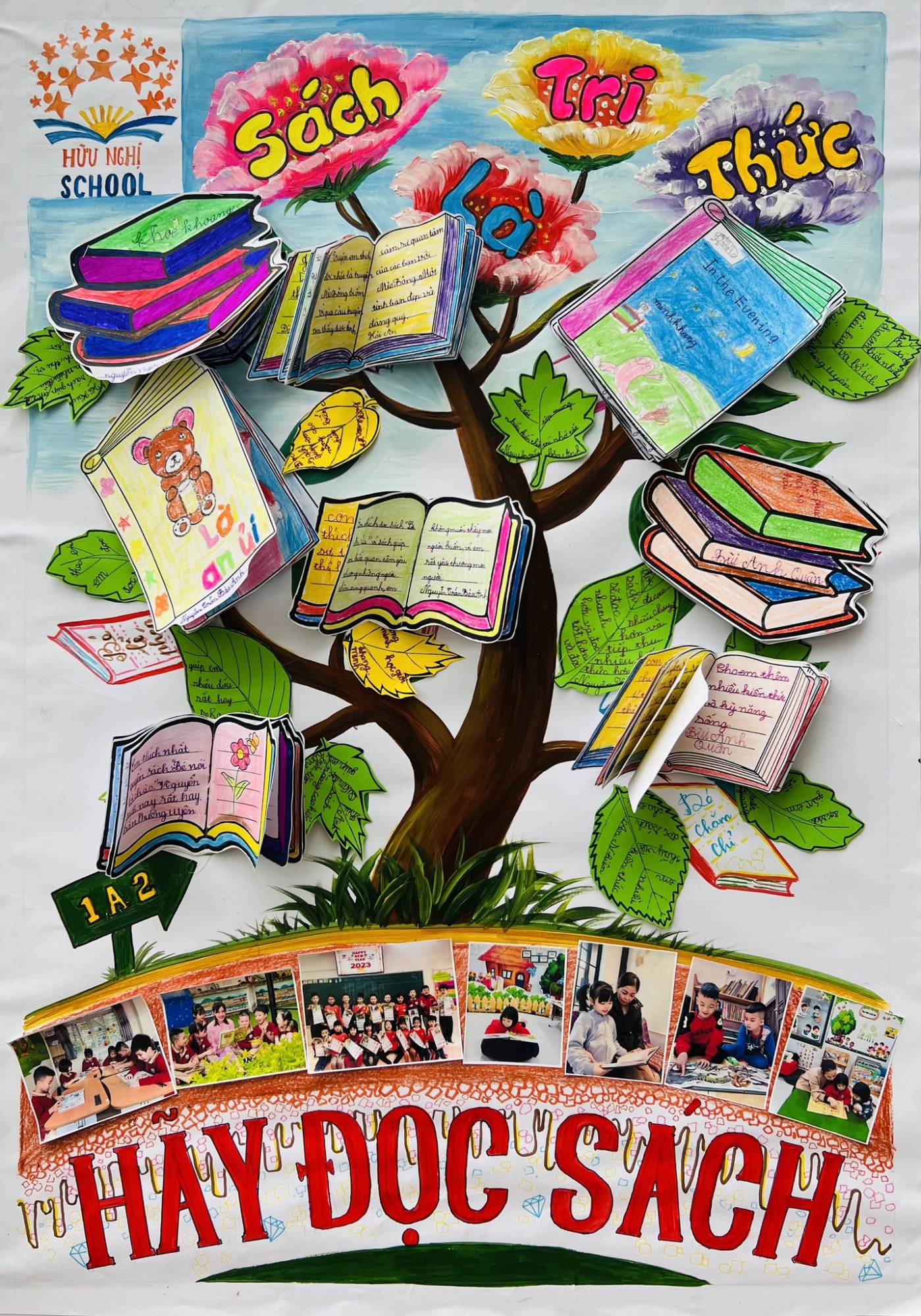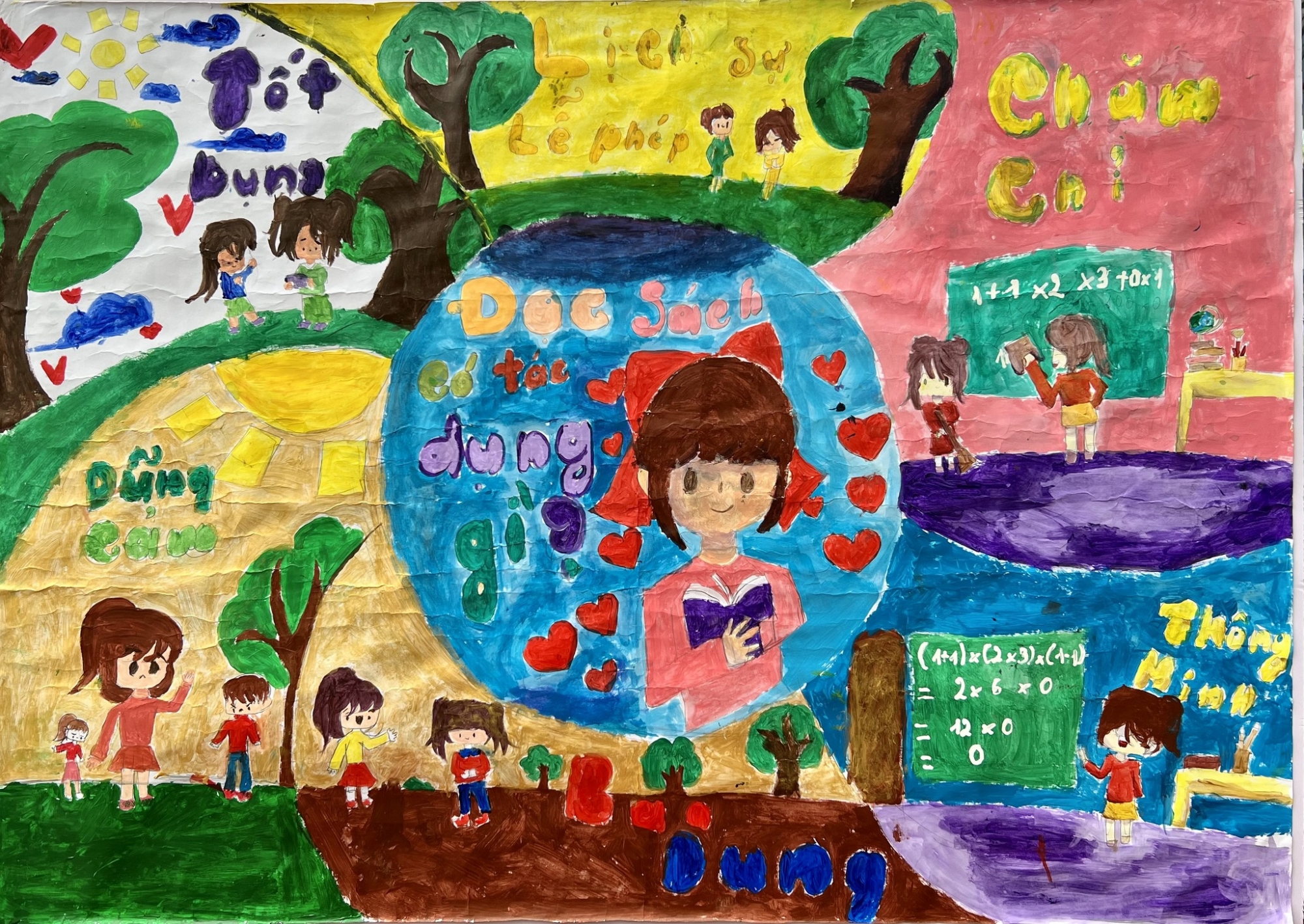 Mỗi tác phẩm tranh/ poster dự thi đều được cô và trò các lớp đầu tư rất công phu từ ý tưởng đến nội dung, nhằm tôn vinh giá trị, ý nghĩa, tầm quan trọng của sách và văn hóa đọc trong đời sống tinh thần của các em.
