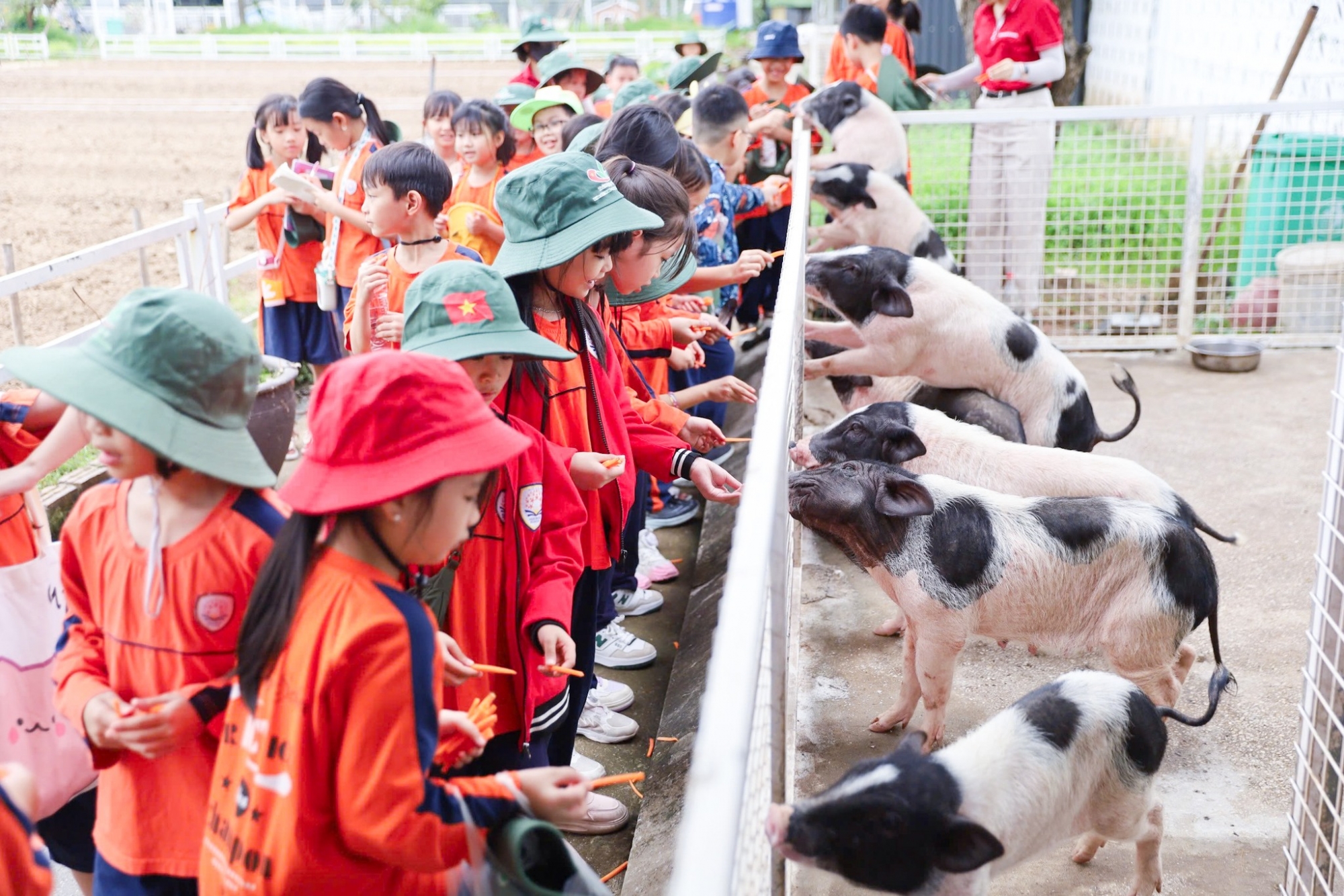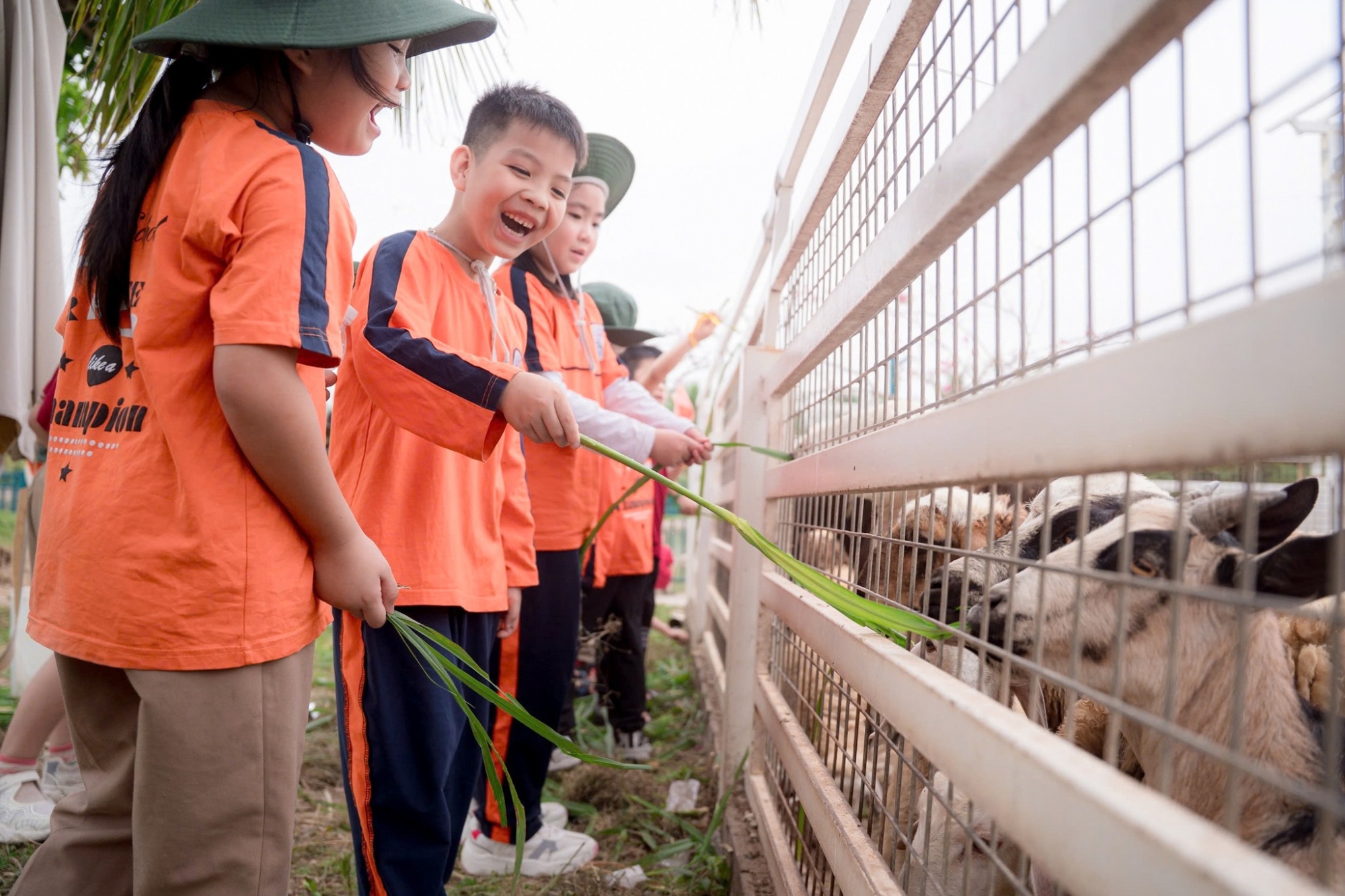 Hành trình học tập tại nông trại không chỉ dừng lại ở việc vui chơi. Mỗi hoạt động đều ẩn chứa một bài học sâu sắc. Các em được dạo bước trong vườn hoa rực rỡ sắc màu, ngắm nhìn vẻ đẹp của tự nhiên. Đặc biệt, hoạt động nhặt những quả trứng gà xinh xắn đã dạy cho các con về vòng đời tự nhiên và giá trị của sự sống.
