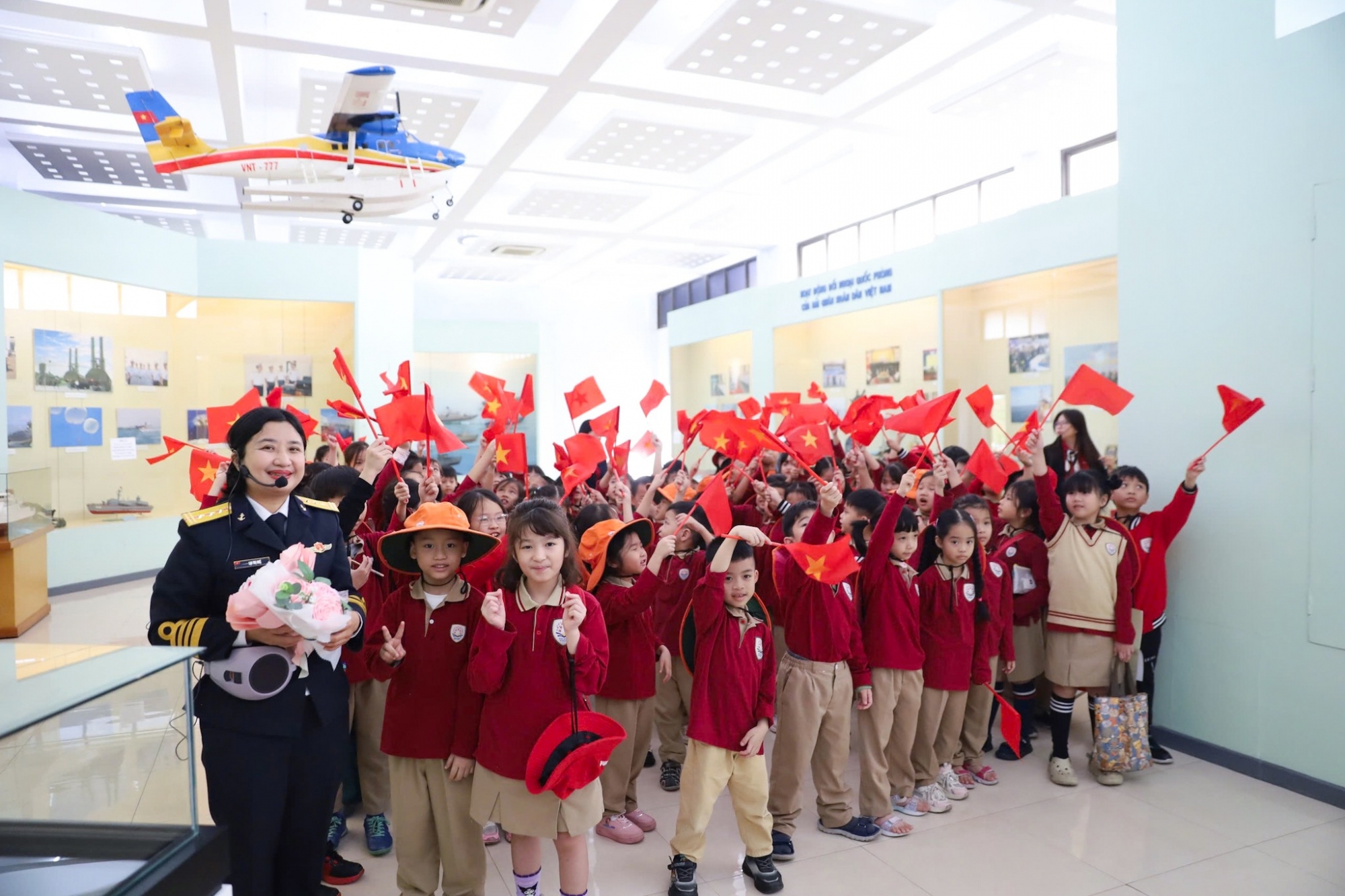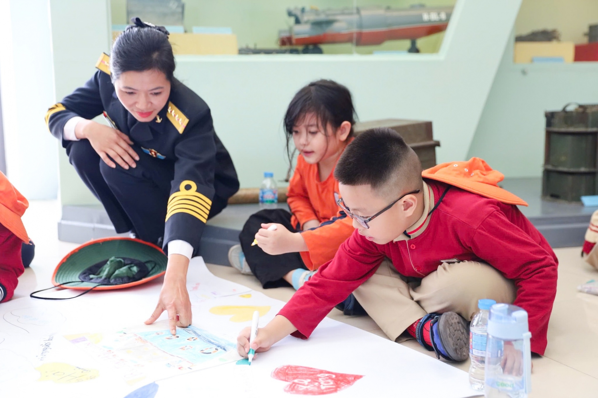 Đứng trước những tư liệu về quần đảo Trường Sa và Hoàng Sa, mỗi ánh mắt chăm chú theo dõi, mỗi đôi tay nhỏ xíu chạm nhẹ vào những mảnh mảnh hiện vật lịch sử đều chứa đựng một sự trân trọng lạ kỳ. Những câu hỏi ngây thơ nhưng đầy tò mò như: "Thưa cô, tàu chiến này đi xa được bao lâu ạ?" hay "Các chú hải quân ngủ ở đâu trên tàu hả cô?" đã cho thấy niềm hứng thú đặc biệt và tinh thần ham học hỏi của các em. Những trải nghiệm này giúp các em hiểu rằng, biển đảo không chỉ là một phần lãnh thổ trên bản đồ, mà là "máu thịt", là quê hương cần được giữ gìn.