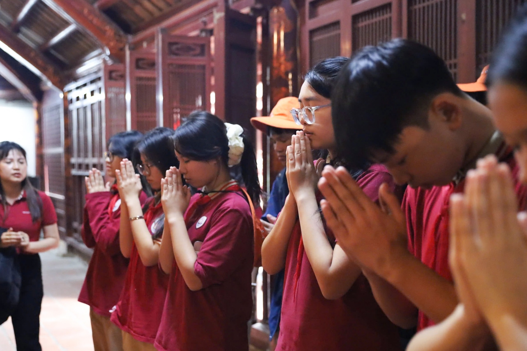 Tiếp nối hành trình về nguồn, đoàn xe HNS dừng chân tại Văn Miếu Mao Điền (Hải Dương) – một trong những biểu tượng văn hóa, giáo dục lớn nhất của vùng đất khoa bảng xưa. Trong không gian linh thiêng và cổ kính, thầy và trò nhà trường đã cùng nhau thực hiện nghi thức dâng hương, bày tỏ lòng thành kính trước các bậc tiền nhân.