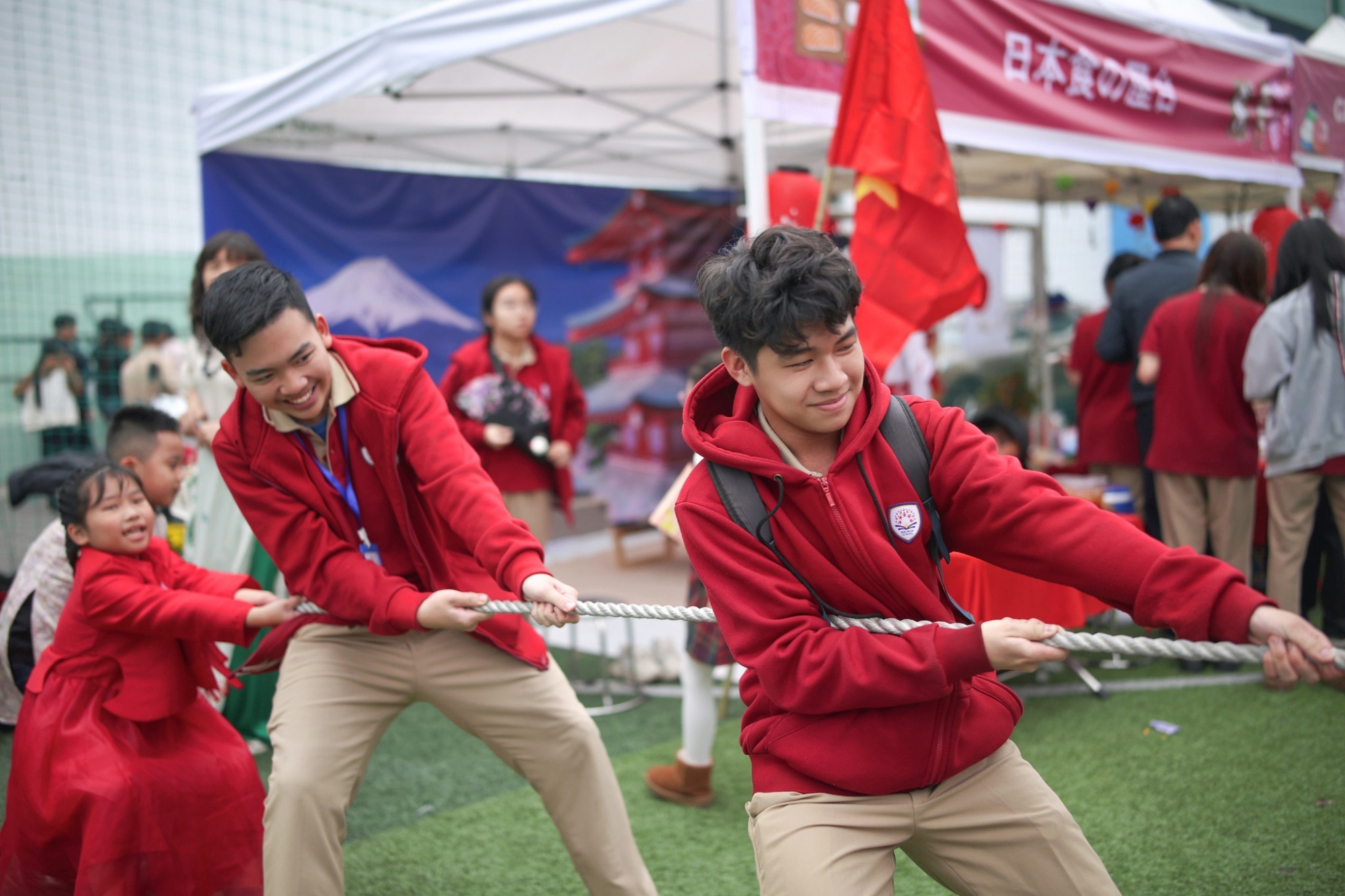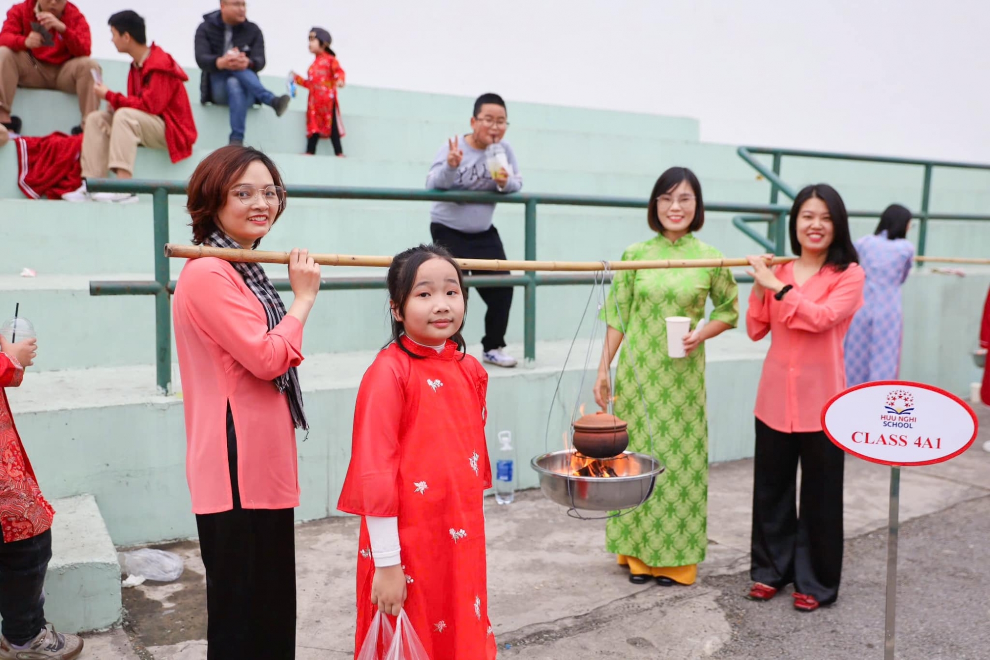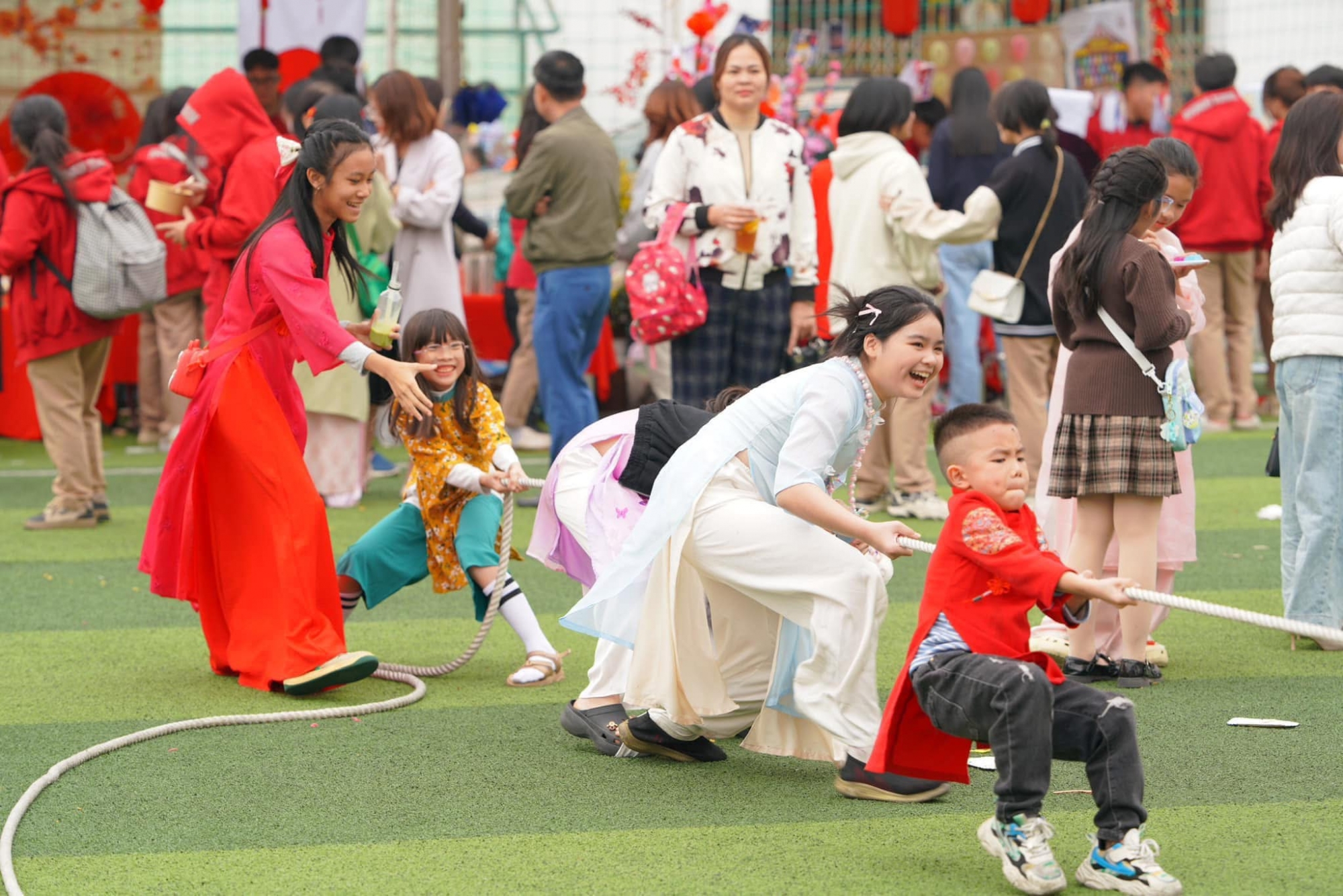 Không khí hội chợ càng thêm hào hứng với trò chơi kéo co – một trò chơi thể hiện tinh thần đồng đội và sự đoàn kết. Học sinh các cấp cùng phụ huynh sẽ chia thành từng đội, cùng nhau hợp sức để chinh phục thử thách. Những tiếng hò reo cổ vũ, sự quyết tâm của từng thành viên sẽ tạo nên một bầu không khí náo nhiệt, gắn kết niềm vui trong ngày hội đầu năm.