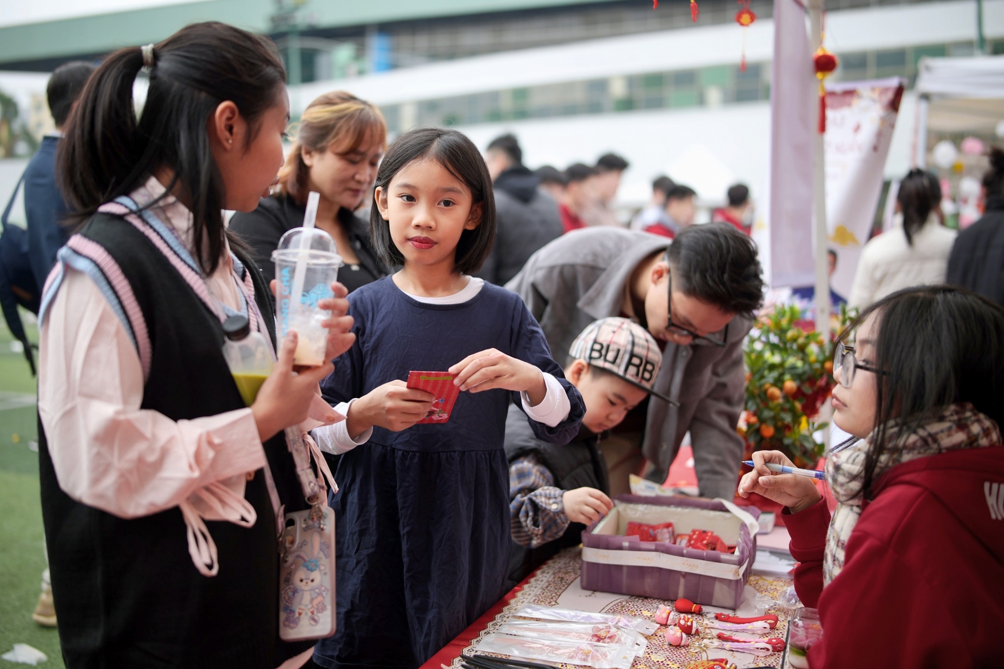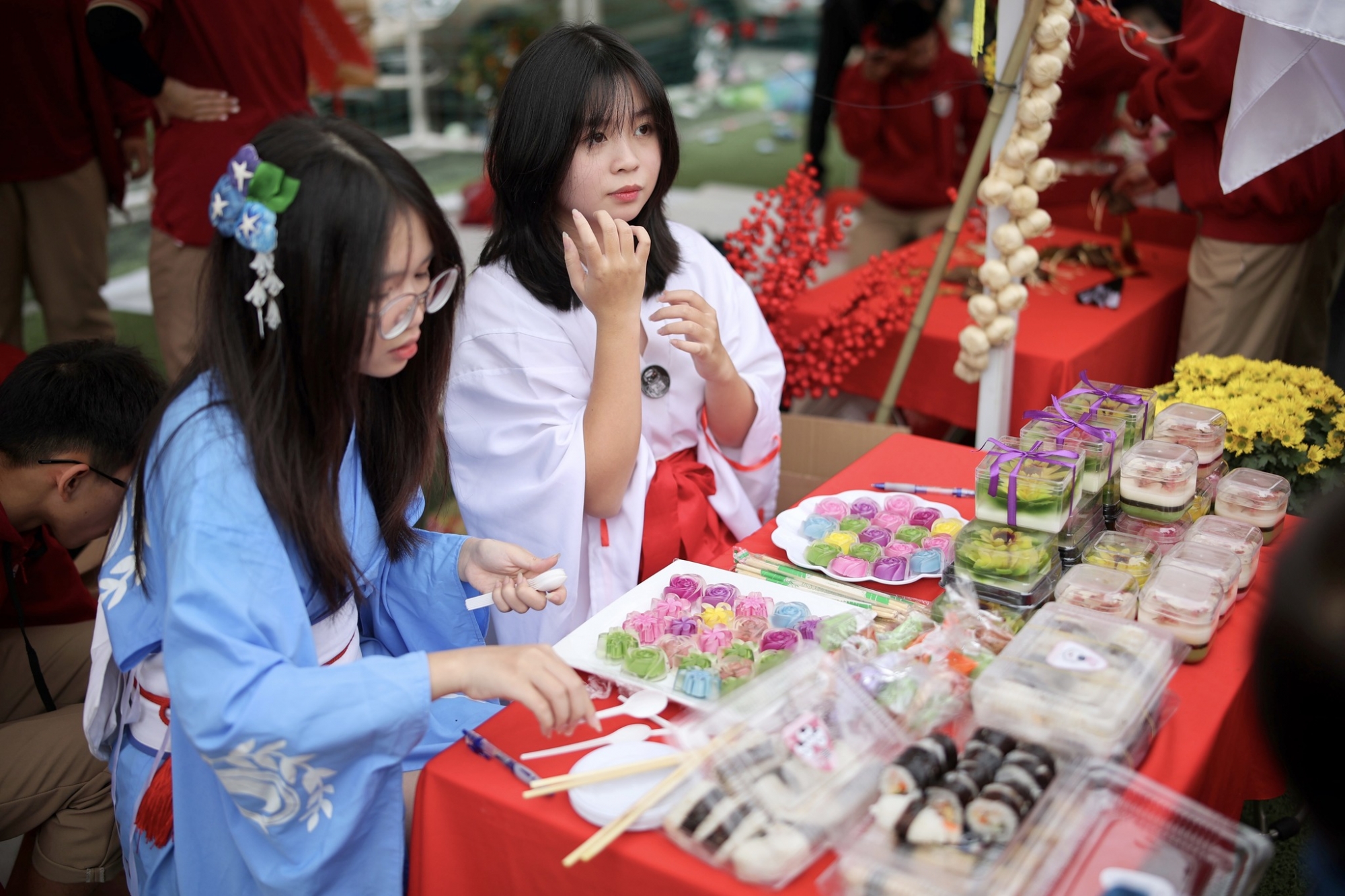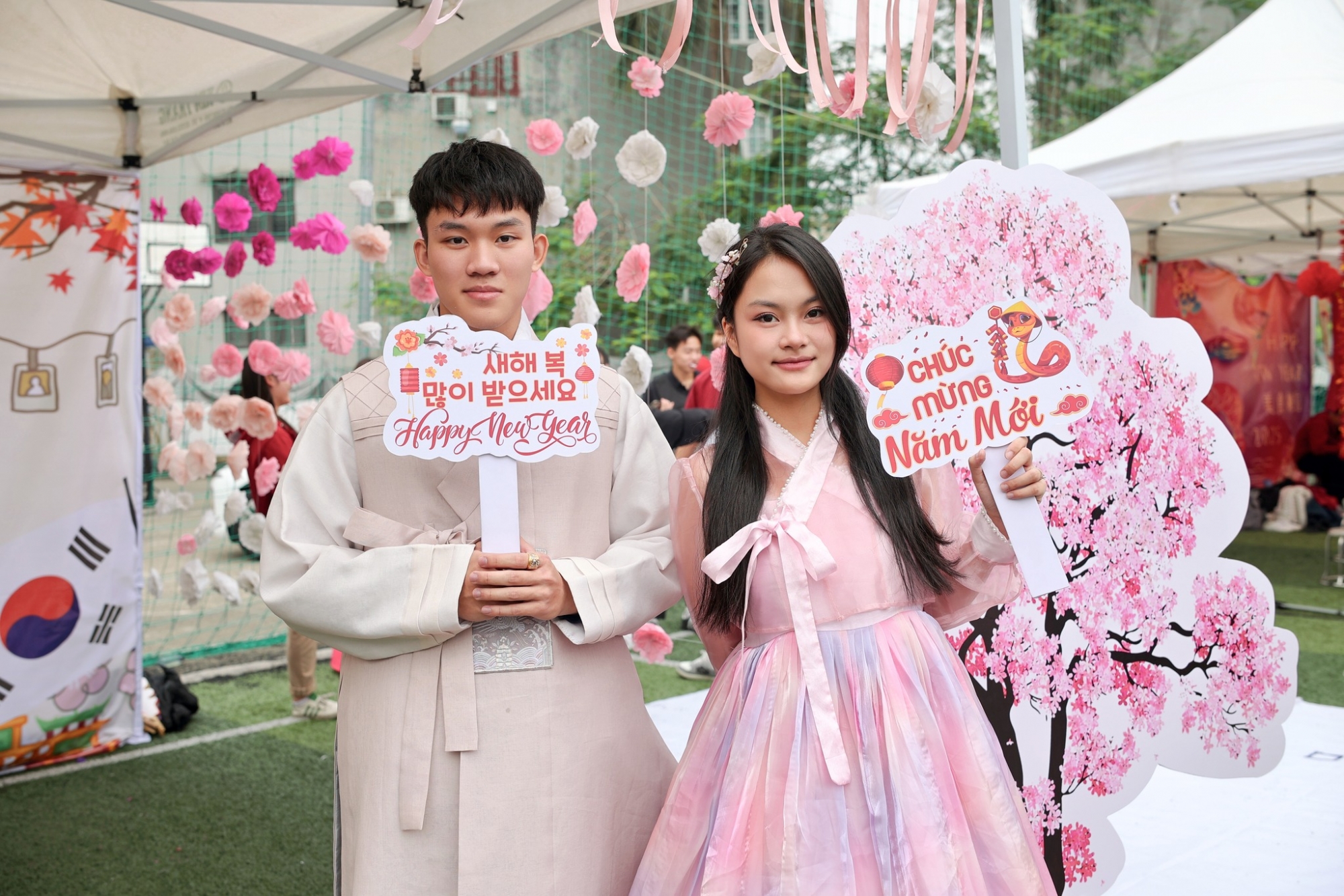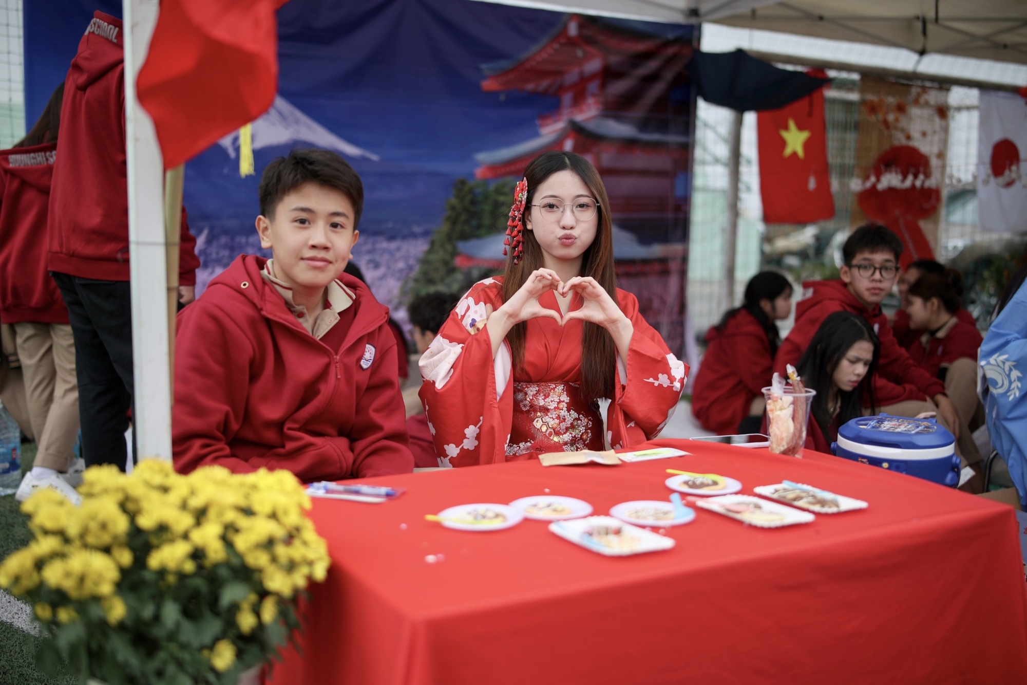 Không chỉ tái hiện không khí Tết Việt rộn ràng, hội chợ còn mở rộng cánh cửa giao lưu văn hóa với các gian hàng Tết đặc sắc của Trung Quốc, Nhật Bản và Hàn Quốc, giúp các em học sinh khám phá truyền thống đón năm mới tại các quốc gia châu Á.