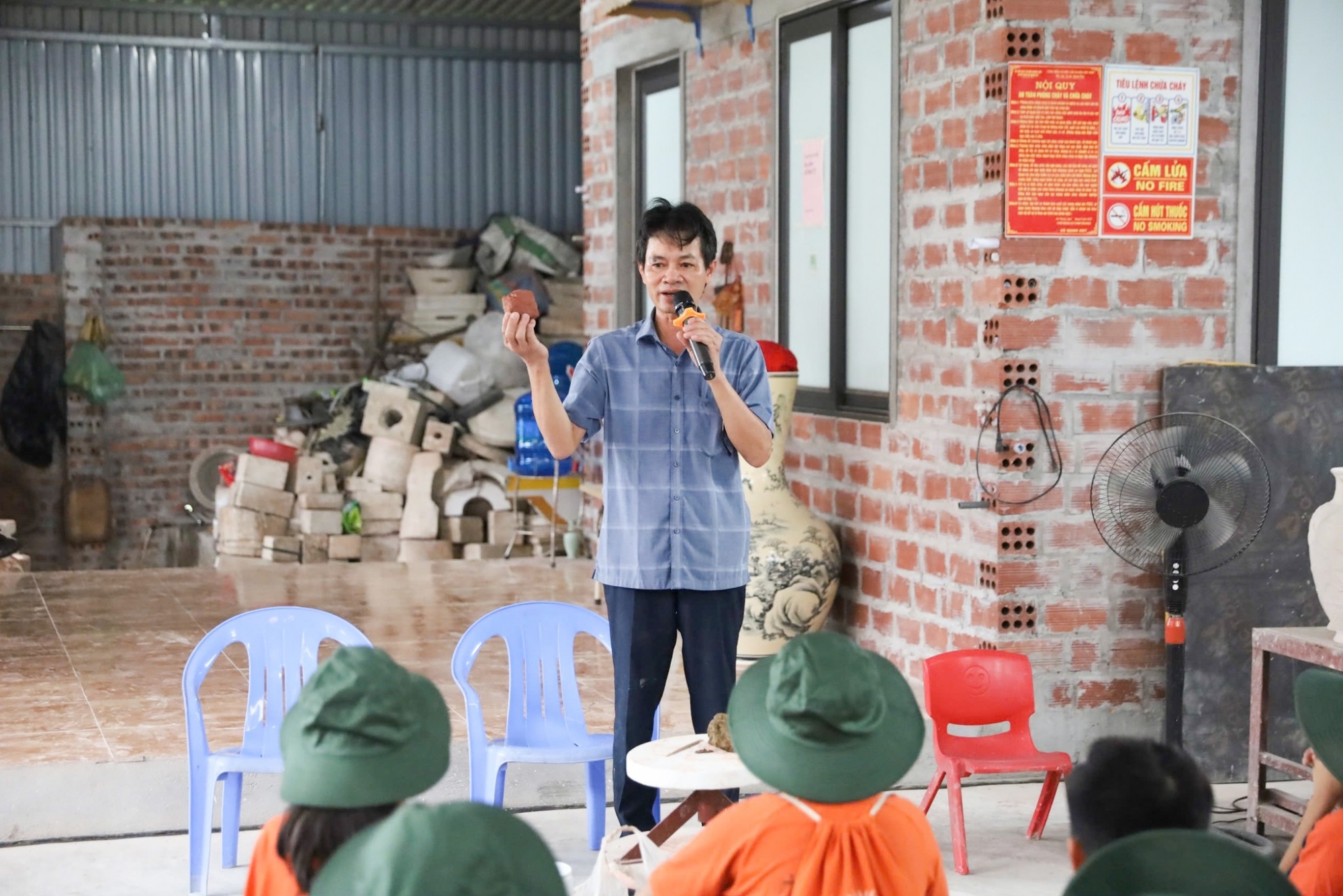 Tại làng nghề gốm Dưỡng Động, các bạn nhỏ đã được tận mắt chứng kiến và trải nghiệm toàn bộ quy trình làm gốm thủ công, từ khâu sơ khai đến khi sản phẩm hoàn thiện. Các em được lắng nghe những câu chuyện thú vị về lịch sử hình thành và phát triển của làng nghề, hiểu hơn về sự tâm huyết của những nghệ nhân.