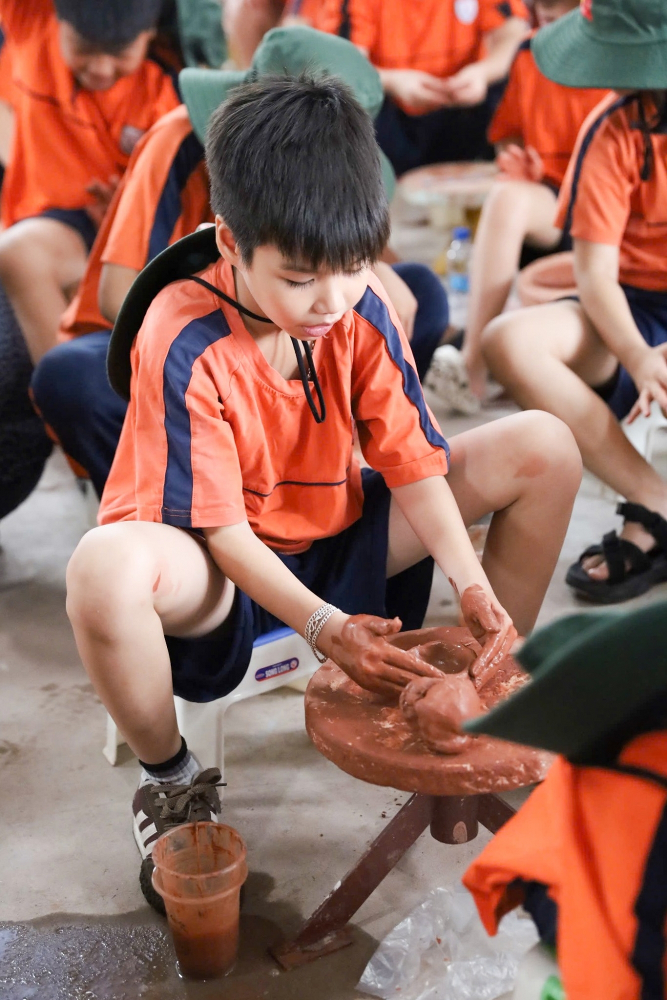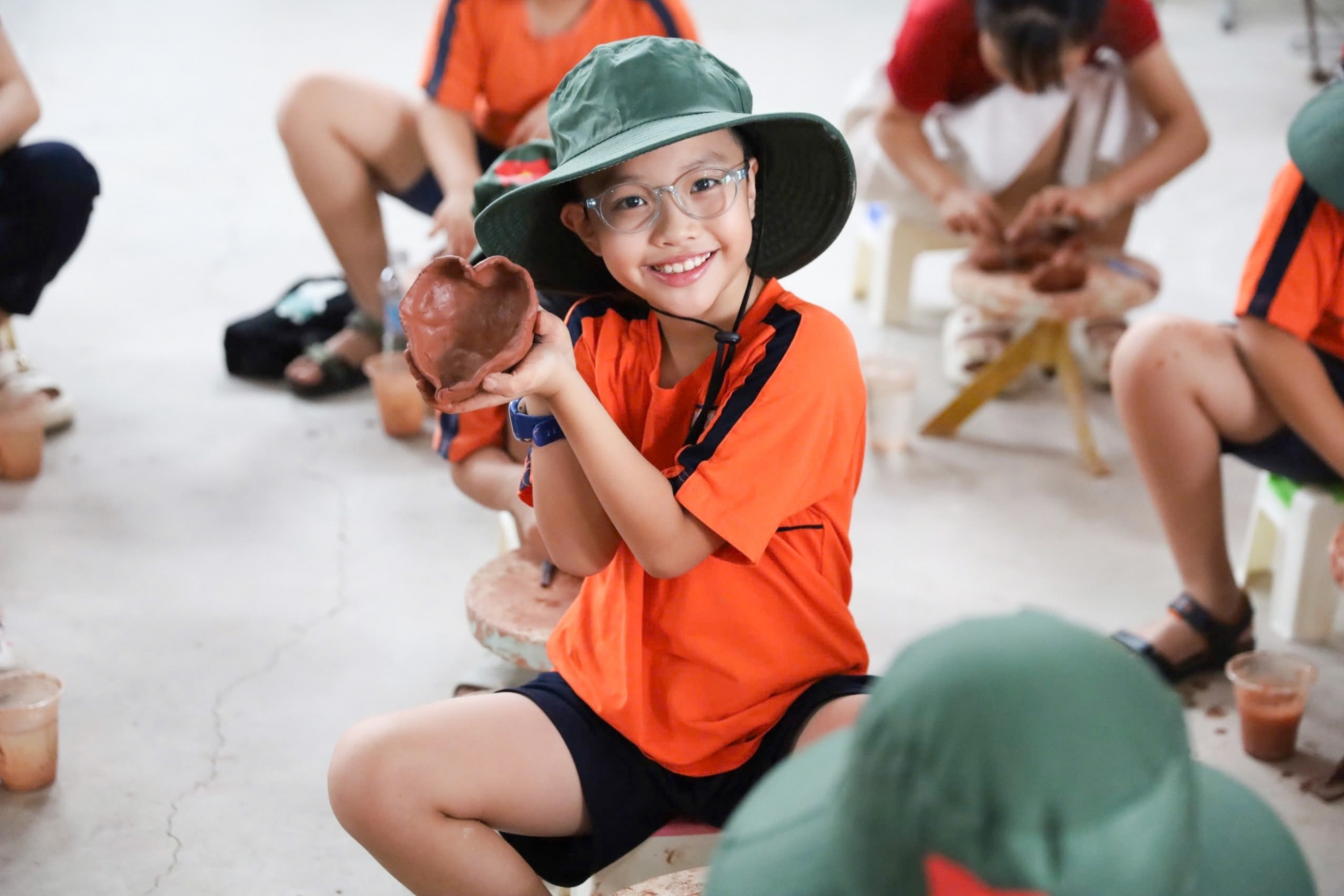 - Làm Chủ Bàn Xoay: Các em tự tay nhào nặn đất sét, xoay bàn xoay để tạo hình, biến khối đất vô tri thành những sản phẩm gốm mang hình dáng riêng.
