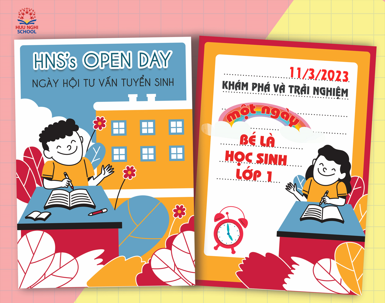 - Trải nghiệm 01 ngày bé là học sinh lớp 1 với các tiết học: Tư duy logic; Tiếng Việt diệu kì; Tiếng Anh; STEM; Mỹ thuật; Âm nhạc; Hoạt động thể chất; Sinh hoạt bán trú tại HNS.